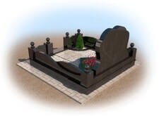 Мемориальный комплекс из черного гранита с цветником в виде сердца
